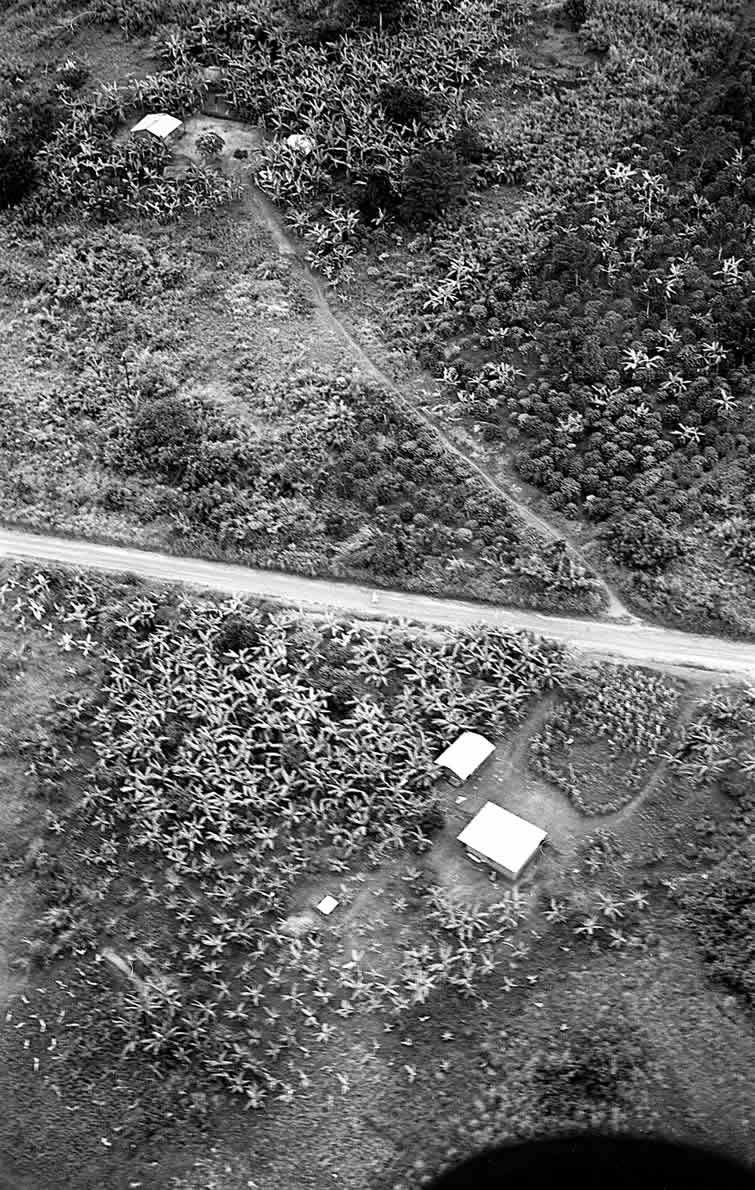 BUGANDA.Entebbe to West . . . . . . . . . . . . . , . . . . . . . . . . . . . . . . . . . . . . . . . . . . . . .. . . . . . Coffee with plantain bananas along a road.
