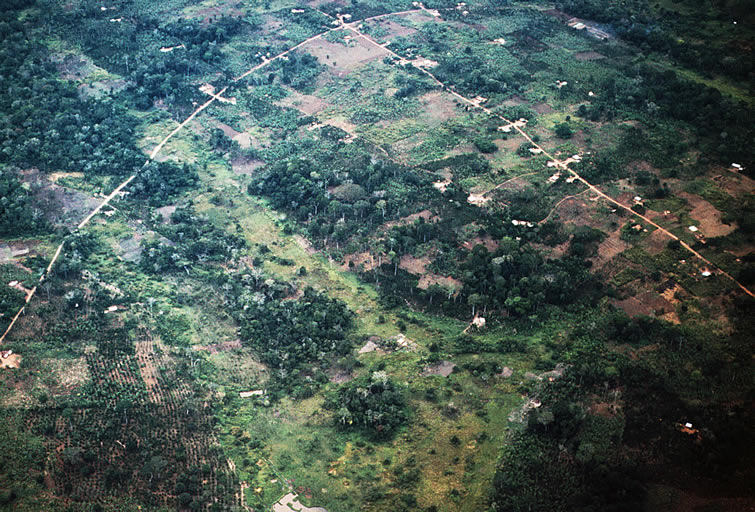 BUGANDA Sese to East .. . . . . . .. . . .. . . . . . . . . . . . . . . . . . . .. . . . . . . . . . . . . . . . . . . . . . . . . A second view seen from a lower altitude shows in more detail, cultivated areas within forest patches.