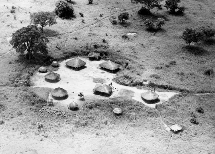 .. . . . . . . . Here is one of the larger settlements observed. Note the kitchen garden tobacco patch on the near side of the settlement.