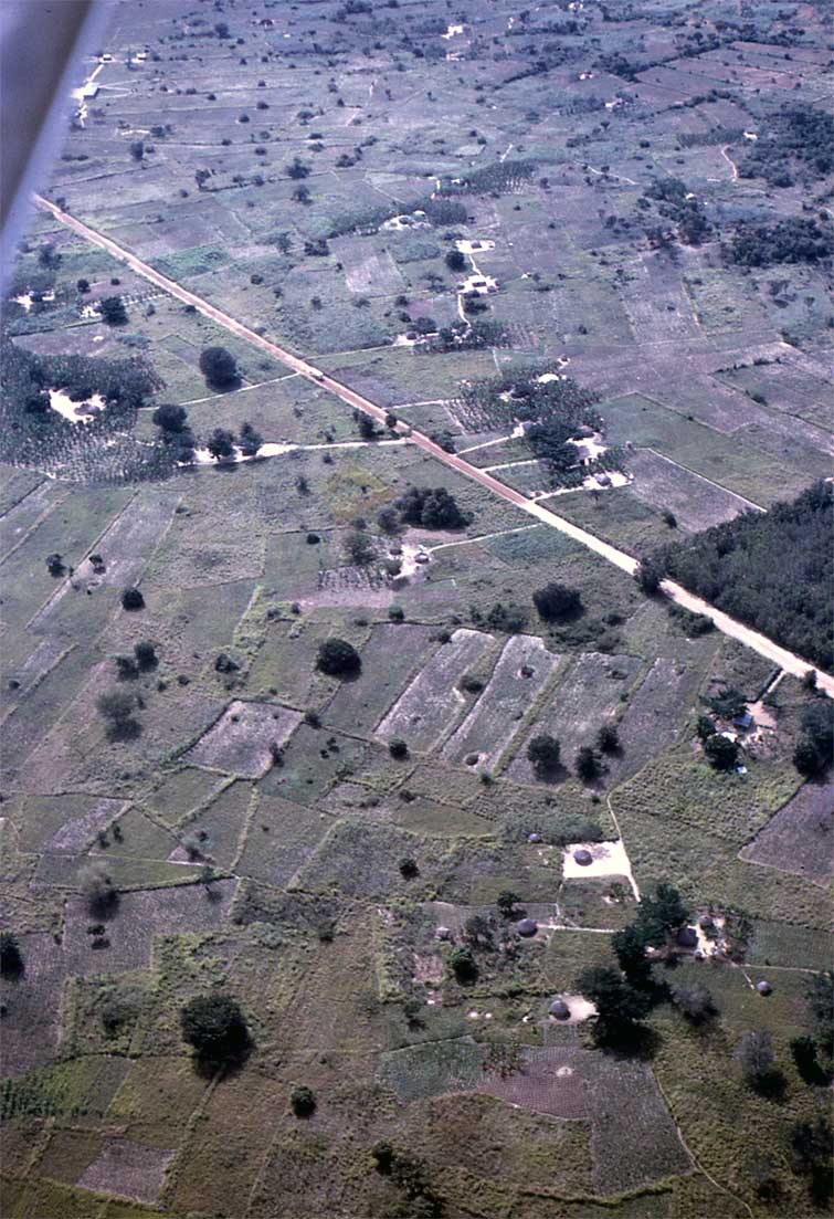 LANGO. . . . . . . . . . . . . . .. . . . . . . . . . . . . . . . . .. . . . . . . . . . . . . . . . . . . . . . . . . . . . . ............ . Scene along the main road to Namasale. Road resurfacing is under way. The new surfacing material has been spread. Tilled fields show over most of this landscape.