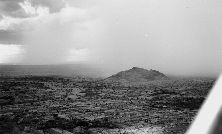 LANGO. . . . . . . . . . . . . . .. . . . . . . . . . . . . . . . . .. . . . . . . . . . . . . . . . . . . . . . . . . . . . . ............ . Eruti mountain with rain behind it. The rain storms were localized and we dodged around them. Extensive agricultural setttlement is seen in the area.